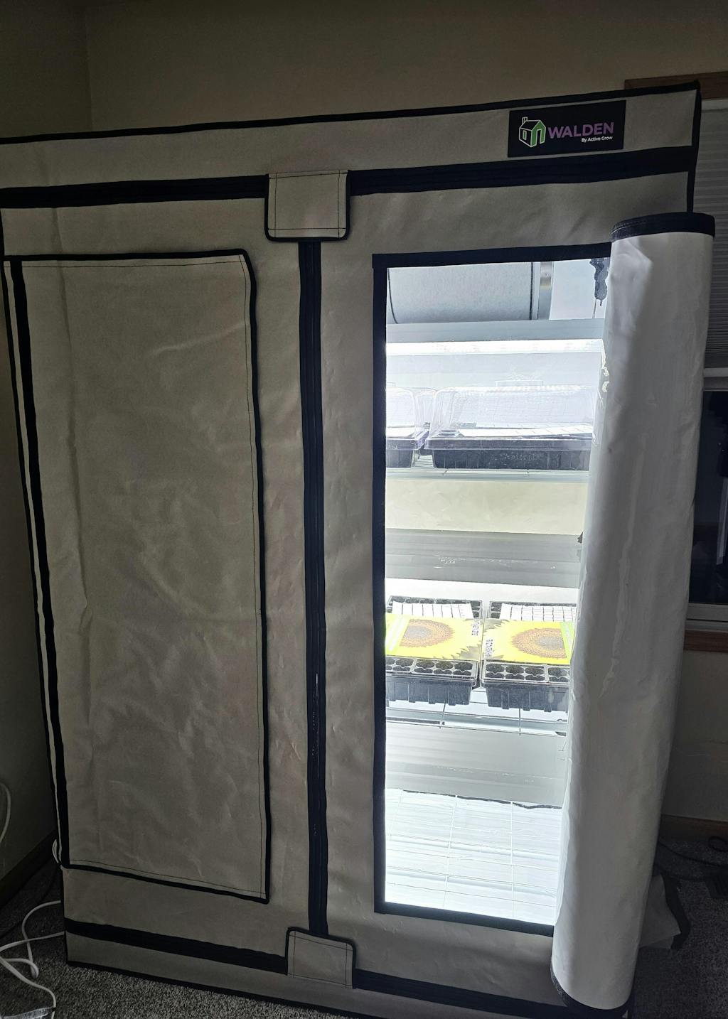 Extra-large front viewing windows (21.26″x59.06″) let growers check on plants without disturbing humidity or temperature. Window covers roll back and secure with velcro straps.